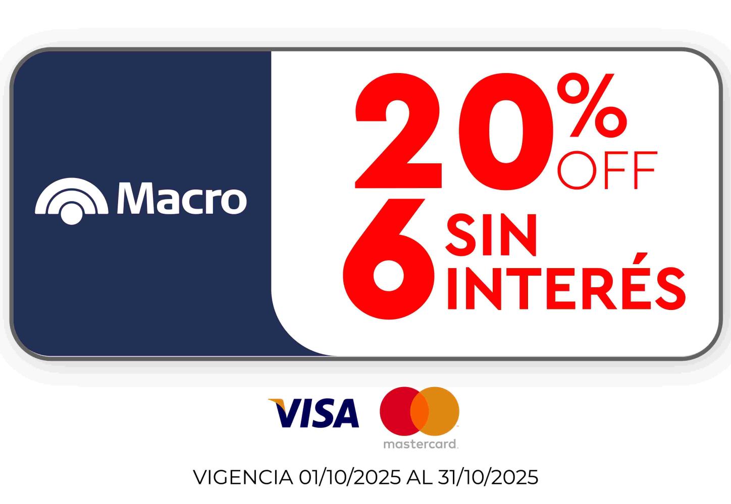 Promoción Banco MACRO: 30% off + 3 cuotas sin interés o 20% off + 6 cuotas sin interés en todos los productos. Vigencia del 10/11/2025 al 30/11/2025 o hasta agotar stock de 5 uni. El descuento se aplica sobre el precio de lista. Promoción válida todos los días abonando con tarjetas Visa y Mastercard del Banco Macro.CFT 0,00% (Costo Financiero Total). TNA 0,00% (Tasa Nominal Anual).TEA 0,00% (Tasa Efectiva Anual). Fava Hnos Sacif, Cuit 30-50085237-9 - Casa Central: Av.Luro 3247, Mar del Plata Provincia de Buenos Aires- Argentina.