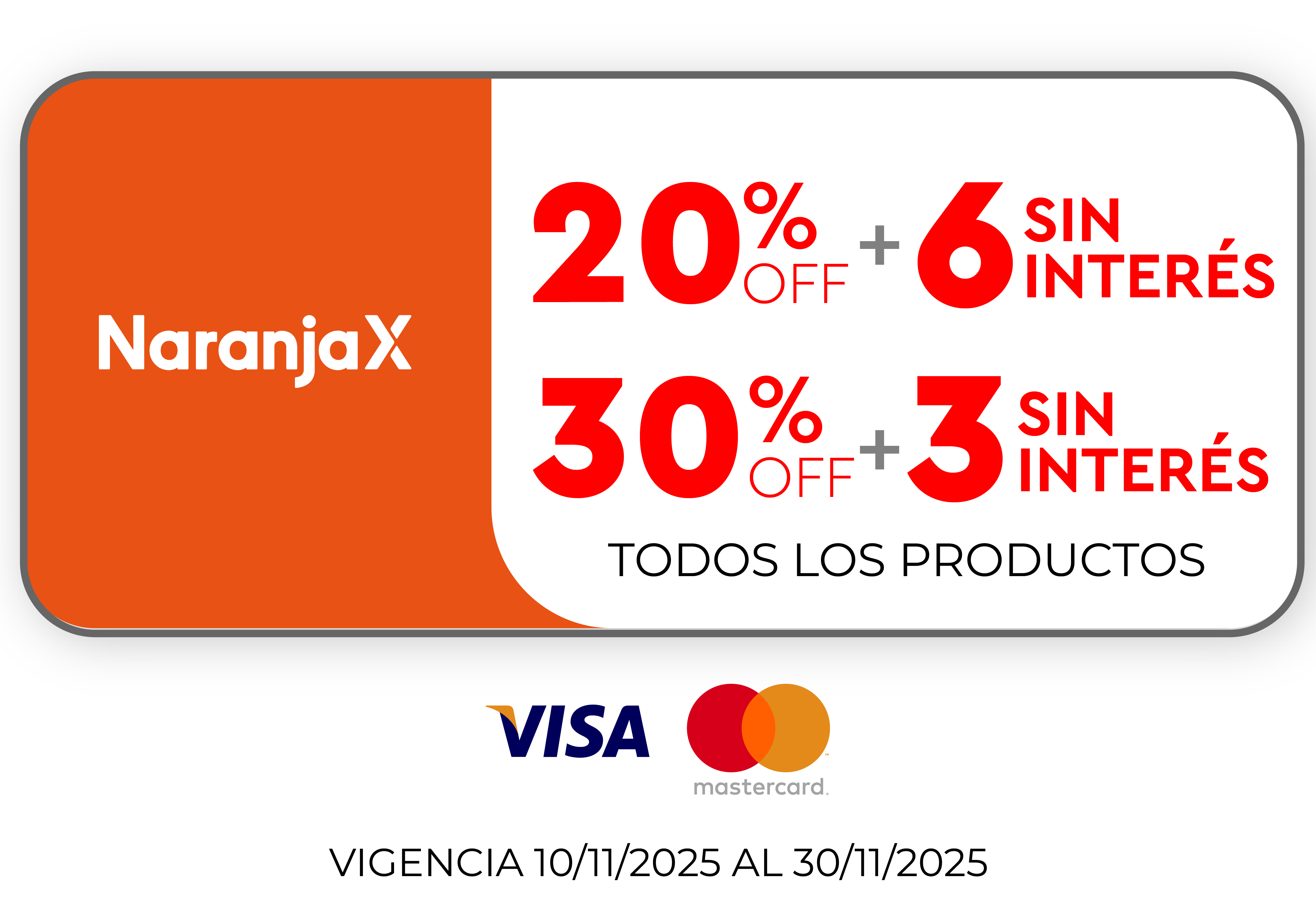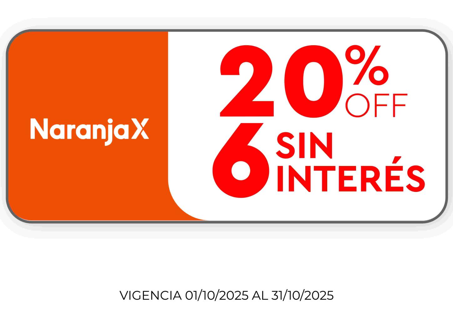 Promoción NARANJA X: 20% off + 6 cuotas sin interés o 30% off + 3 cuotas sin interés en todos los productos. Promoción válida todos los días abonando con tarjetas Visa y Mastercard. Vigencia del 10/11/2025 al 30/11/2025 o hasta agotar stock de 5 uni. El descuento se aplica sobre el precio de lista. CFT 0,00% (Costo Financiero Total). TNA 0,00% (Tasa Nominal Anual). TEA 0,00% (Tasa Efectiva Anual). Fava Hnos Sacif, Cuit 30-50085237-9 - Casa Central: Av.Luro 3247, Mar del Plata Provincia de Buenos Aires- Argentina.