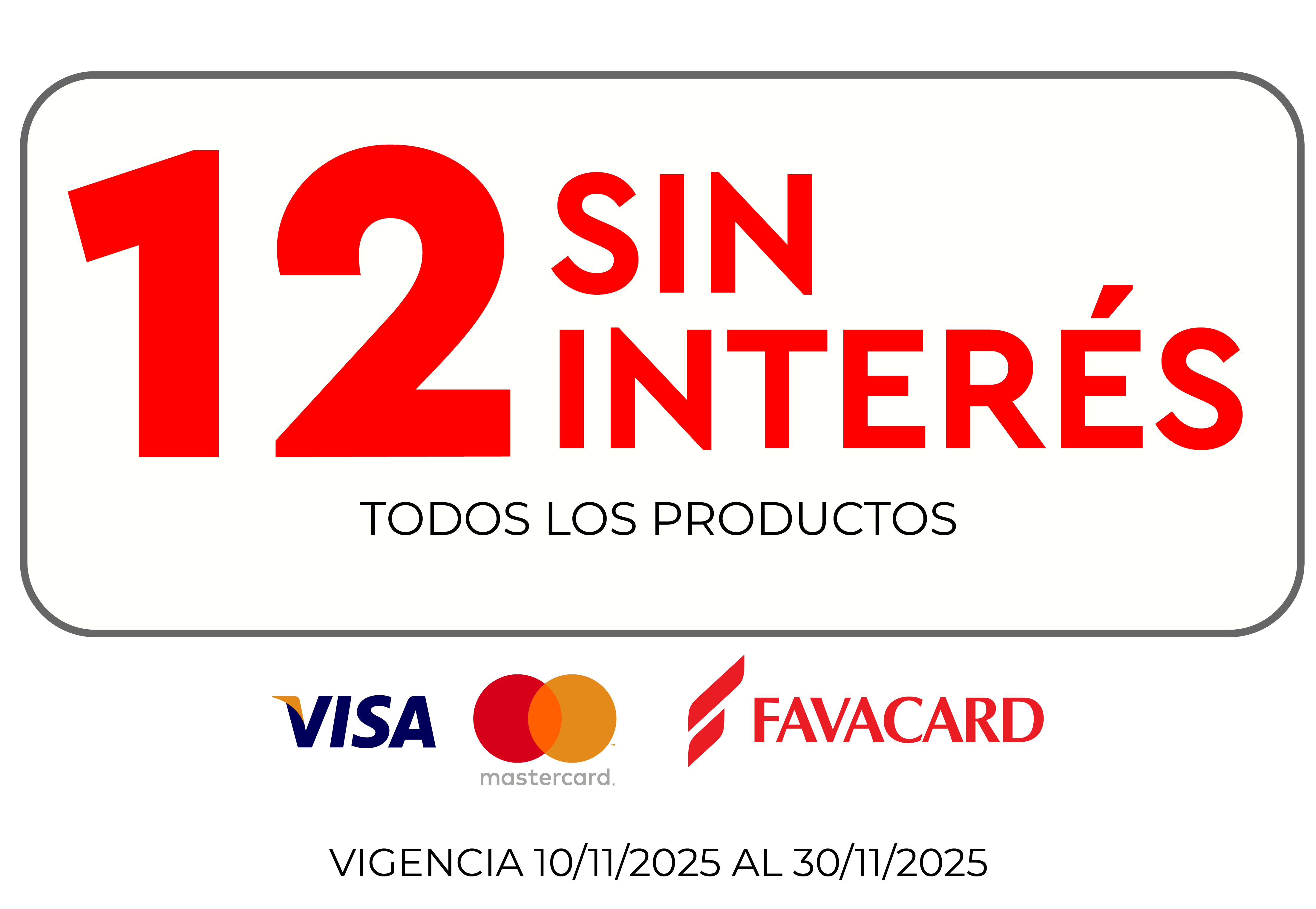 Promoción 12 cuotas sin interés: 12 cuotas sin interés en todos los productos abonando con tarjeta Favacard, Visa o Mastercard (bancarizadas). Vigente desde el 10/11/2025 al 30/11/2025 o hasta agotar stock de 5 uni. Válido para compras efectuadas en sucursales, venta teléfonica y venta web. CFTNA 0,00% (Costo Financiero Total Nominal Anual).CFT 0,00% (Costo Financiero Total).TNA 0,00% (Tasa Nominal Anual).TEA 0,00% (Tasa Efectiva Anual). Fava Hnos Sacif, Cuit 30-50085237-9 - Casa Central: Av.Luro 3247, Mar del Plata Provincia de Buenos Aires- Argentina.