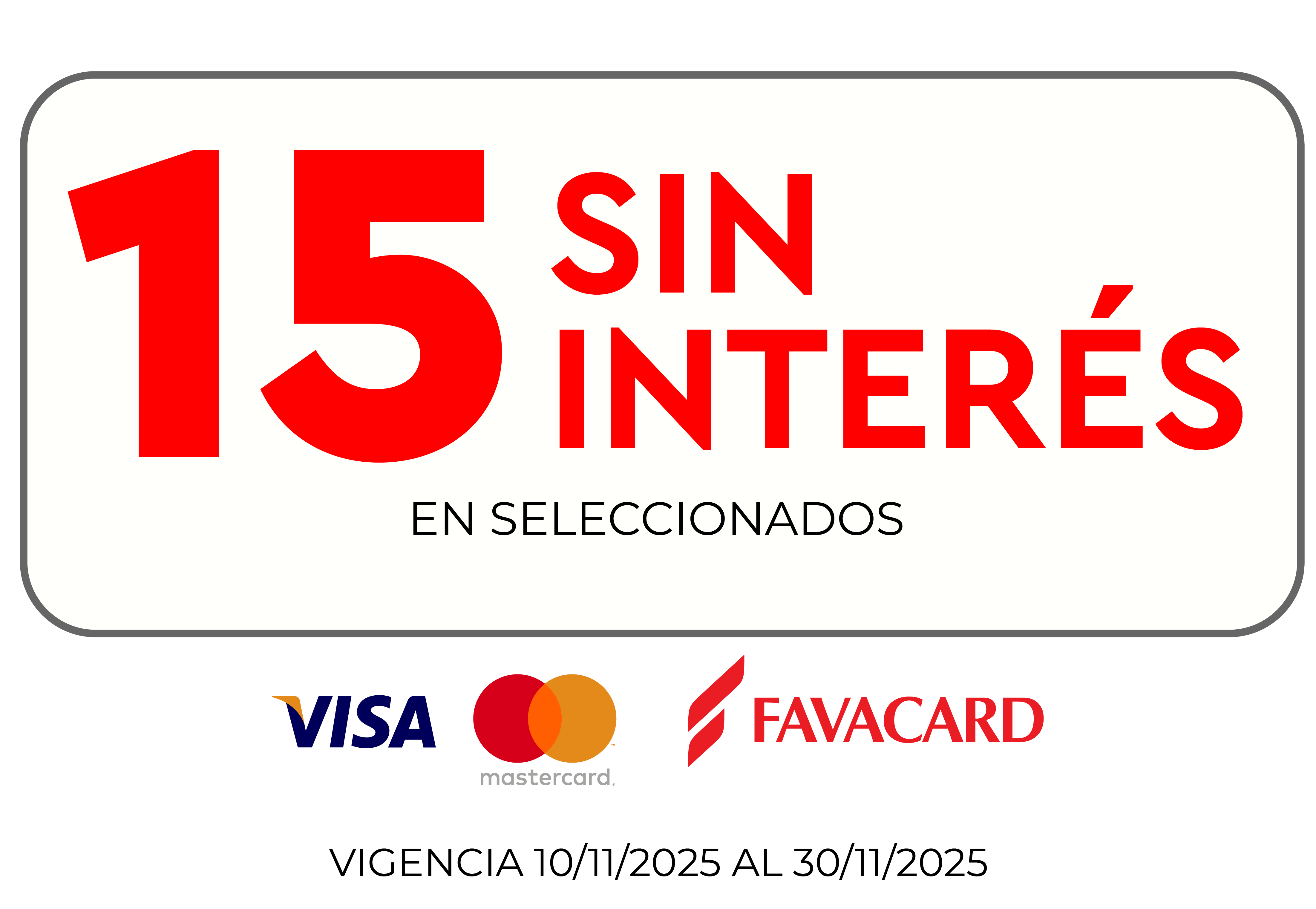 Promoción 15 cuotas sin interés: 15 cuotas sin interés en productos seleccionados abonando con tarjeta Favacard, Visa o Mastercard (bancarizadas). Vigente desde el 10/11/2025 al 30/11/2025 o hasta agotar stock de 5 uni. Válido para compras efectuadas en sucursales, venta teléfonica y venta web. CFTNA 0,00% (Costo Financiero Total Nominal Anual).CFT 0,00% (Costo Financiero Total).TNA 0,00% (Tasa Nominal Anual).TEA 0,00% (Tasa Efectiva Anual). Fava Hnos Sacif, Cuit 30-50085237-9 - Casa Central: Av.Luro 3247, Mar del Plata Provincia de Buenos Aires- Argentina.